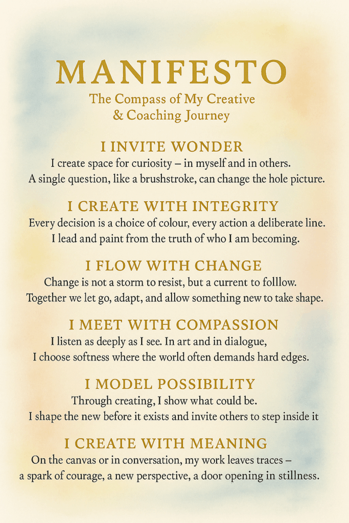 My creations live not only in galleries but also in reflection guides, coaching journeys, and leadership dialogues.