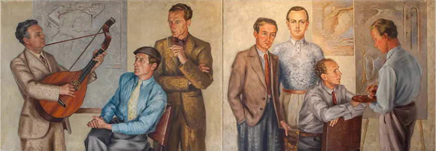 The Halmstad Group—consisting of Erik Olson, Axel Olson, Waldemar Lorentzon, Esaias Thorén, Sven Jonson, and Stellan Mörner—became known for their dreamlike, surrealist, and often geometrically structured paintings. Drawing inspiration from Parisian modernism and the symbolic language of the subconscious, they created art that both provoked and puzzled.
