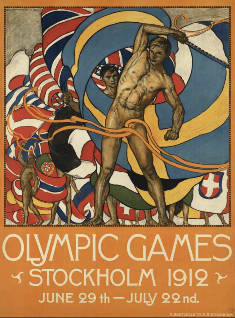 And then there is Sweden’s contribution. In 1932, David Wallin won gold for At the Seaside of Arild [7]. It is a painting that does not shout. It reveals sea light and human presence within landscape. Sport is integrated into its environment rather than elevated above it. Where many works emphasized force and drama, Wallin chose stillness and equilibrium. In retrospect, his work reads almost as a meditation on competition itself. It suggests that strength may reside in restraint, that excellence may be found in presence and relational balance.