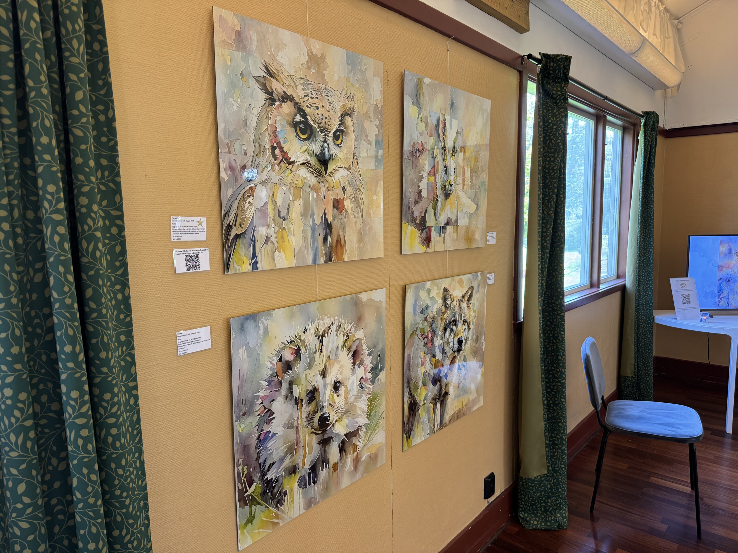 I utställningen Vakande Blickar steg besökarna in i en värld där djuren uppenbarade sig som väktare – målade i akvarell och omskapade digitalt. Varje blick bar på en stilla närvaro, en påminnelse om styrka, mod och visdom som följer oss genom tidens skiften.