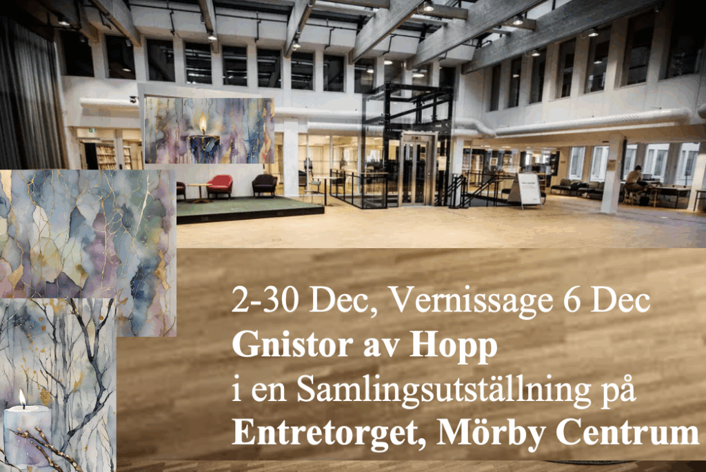 I Gnistor av Hopp söker färgerna kontakt, kompositionerna vandrar från stillhet till rörelse, och digitala lager antyder något ännu ofullständigt — en riktning, en begynnelse. Hopp är inte verklighetsflykt. Det är förutsättningen för förändring.