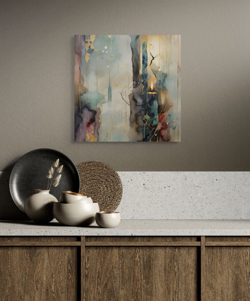 Från Kintsugi ärver verken en vördnad för bristningen: linjer av ljus följer tänkta sprickor, färger samlas kring osynliga sömmar. Fokus ligger inte på det som gått förlorat, utan på det som försöker lysa igenom. Från hoppet lånar verken en inre rörelse — en drift mot förnyelse och återfunnen agens. Digitala lager förstärker denna känsla: rörelse, fragment, skimrande framtidsaningar.