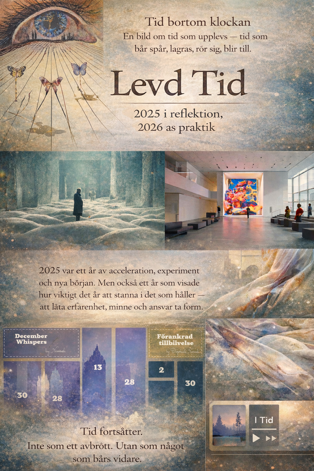 Inget av detta sker i ensamhet. Den levda tiden formas i relation — genom samtal, gemensamt arbete, tillit och närvaro.Till kollegor, samarbetspartners, vänner och familj: tack för att ni har delat denna tid, burit samtal, öppnat perspektiv och gjort det möjligt att både hålla tempo och skapa sammanhang.
